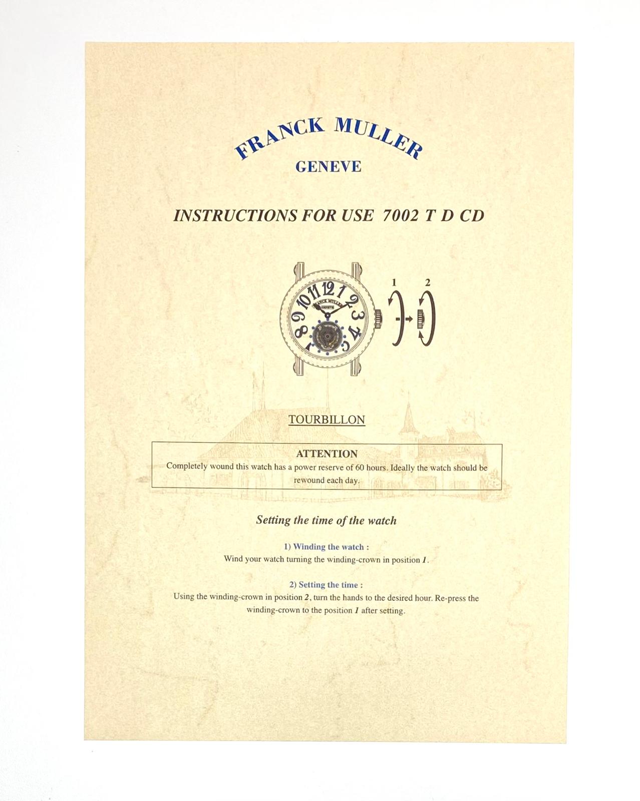 Franck Muller Geneve Instruction for use 7002 T D CD Anleitung/Beschreibung