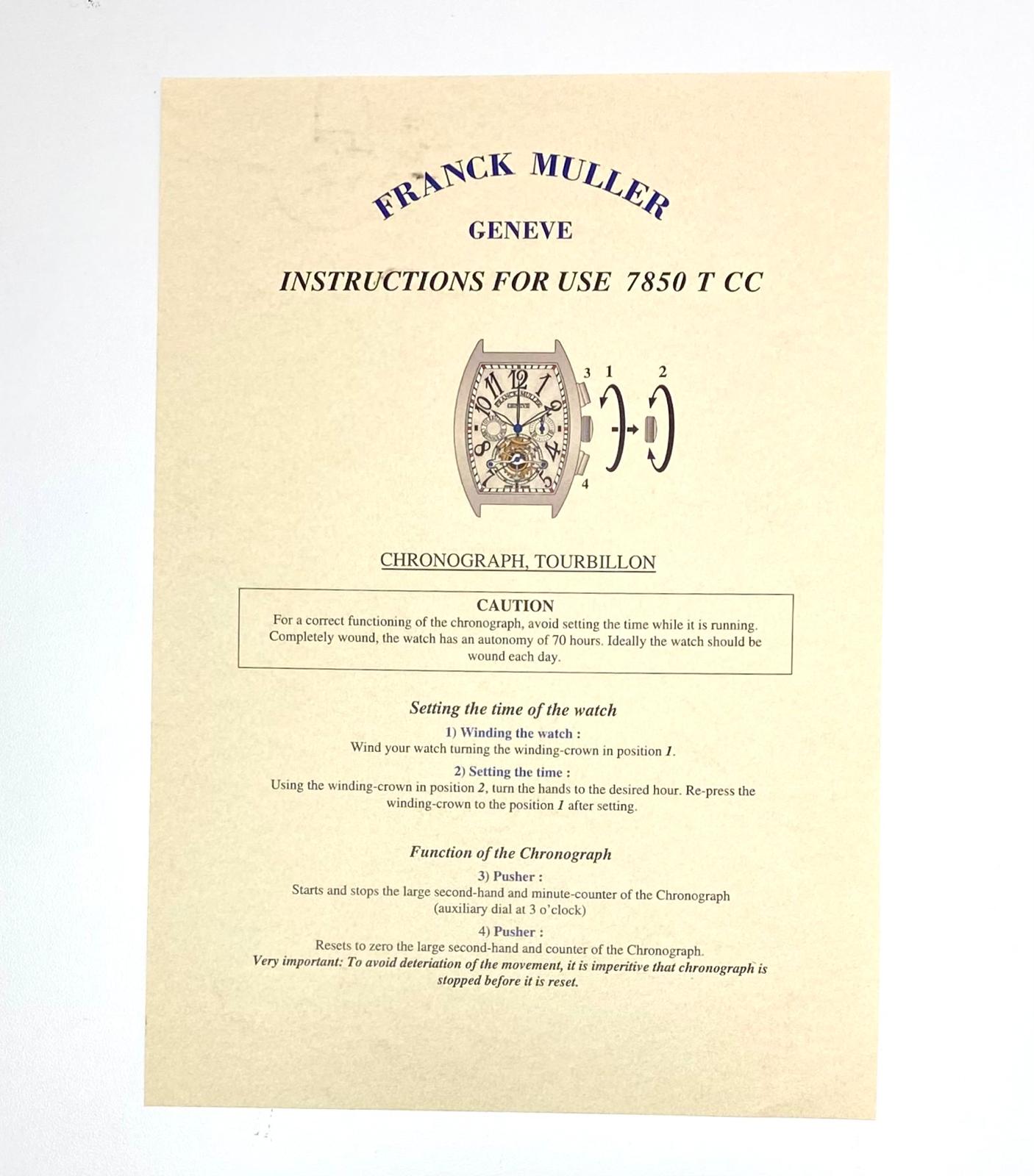 Franck Muller Geneve Instruction for use 7850 T CC Anleitung/Beschreibung