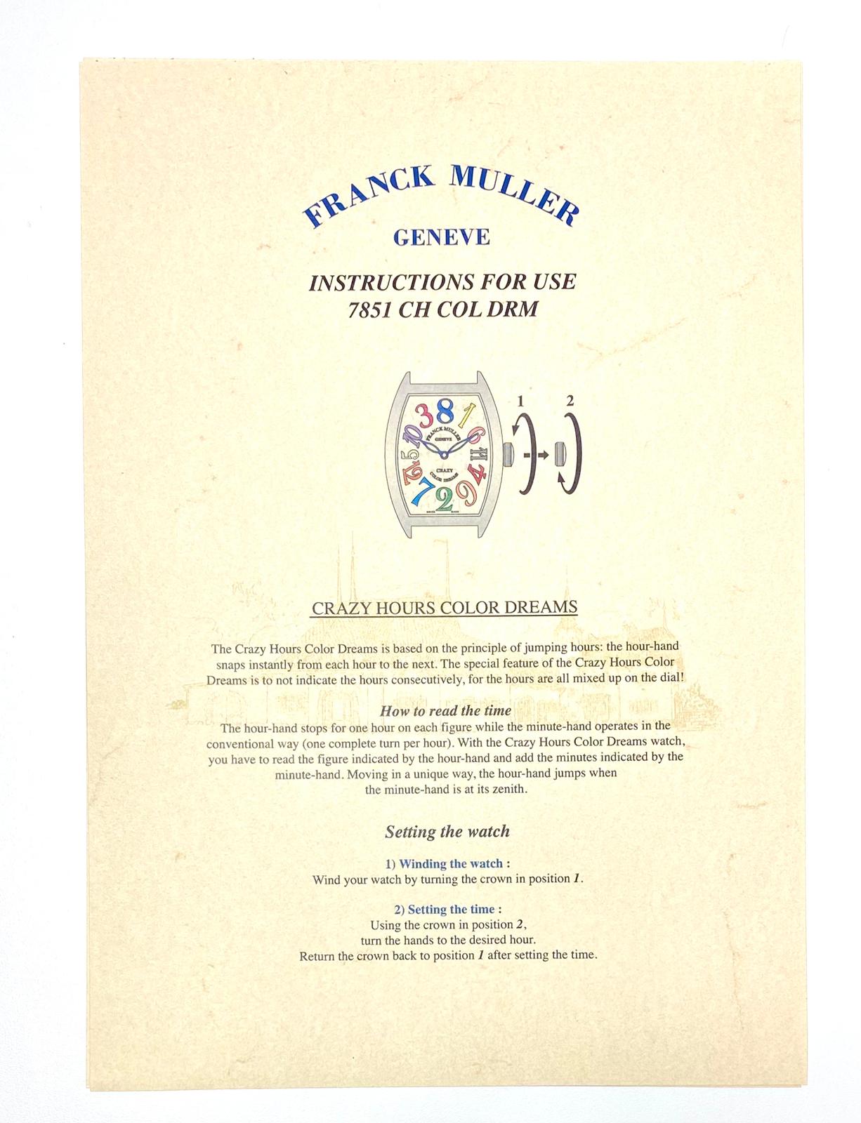Franck Muller Geneve Instruction For Use 7851 CH COL DRM Anleitung/Beschreibung