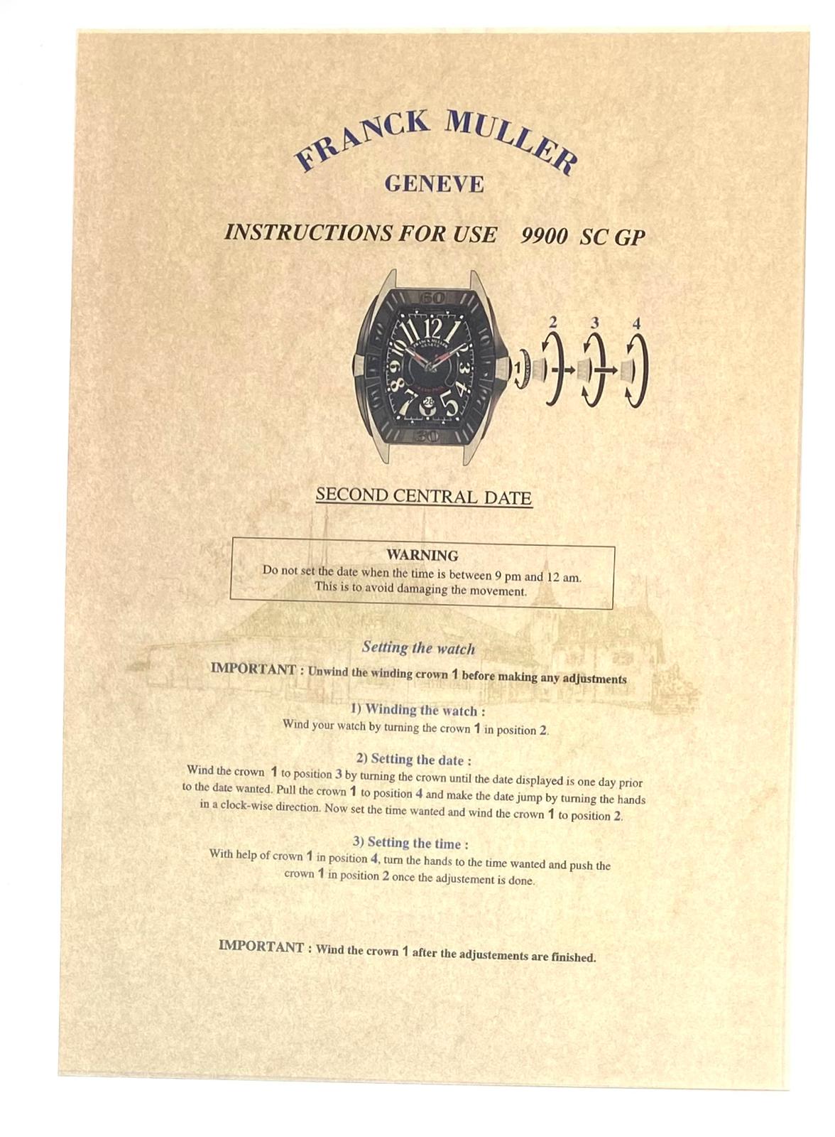 Franck Muller Geneve Instructions for use 9900 SC GP Anleitung/Beschreibung